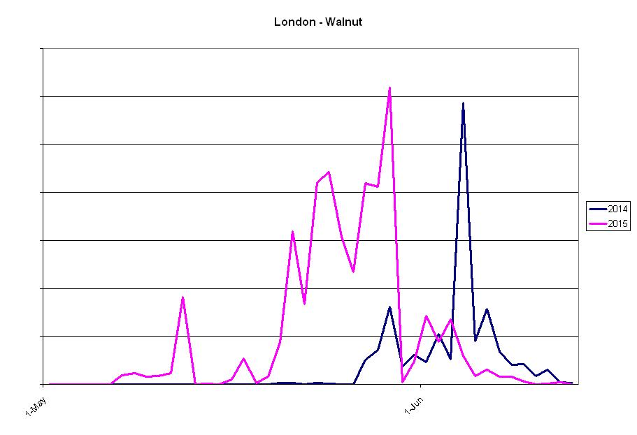 Knowing the start and ends dates of a pollen season is imperative in treating allergies. This graph is an example of how start and end dates vary dramatically from year to year based on weather, environmental conditions and human interruption. This information help allergy sufferers in regulating activities, taking action to minimize impact of allergens on their health and assists practitioners in letting patients know when to start their medication. Join our pollen alert program to get your daily pollen forecasts and to be alerted as to when the season has begun.
