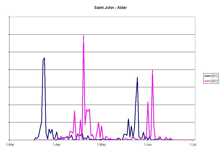 Knowing the start and ends dates of a pollen season is imperative in treating allergies. This graph is an example of how start and end dates vary dramatically from year to year based on weather, environmental conditions and human interruption. This information help allergy sufferers in regulating activities, taking action to minimize impact of allergens on their health and assists practitioners in letting patients know when to start their medication. Join our pollen alert program to get your daily pollen forecasts and to be alerted as to when the season has begun.